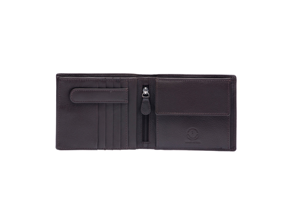 Бумажник мужской серии Claim, включает в себя девять отделений для кредитных карт, закрываются на кнопки, три боковых скрытых отделения, одно боковое сетчатое отделение, закрывается на кнопку, одно отделение для монет, закрывается на кнопку, одно дополнительное скрытое отделение на молнии, два отделения для купюр, позволяющие хранить купюры в развернутом виде.