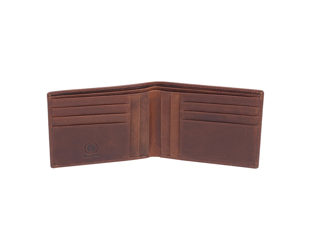 Бумажник мужской серии Dawson, включает в себя шесть отделений для кредитных карт, шесть боковых скрытых отделений, два отделения для купюр, позволяющие хранить купюры в развернутом виде.