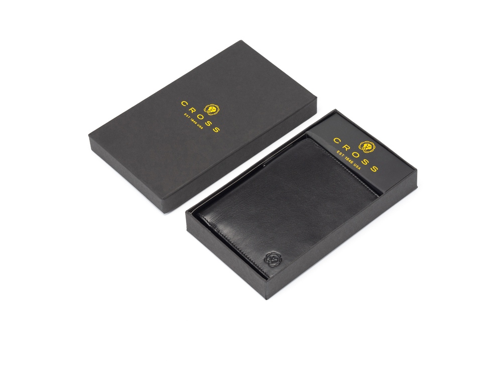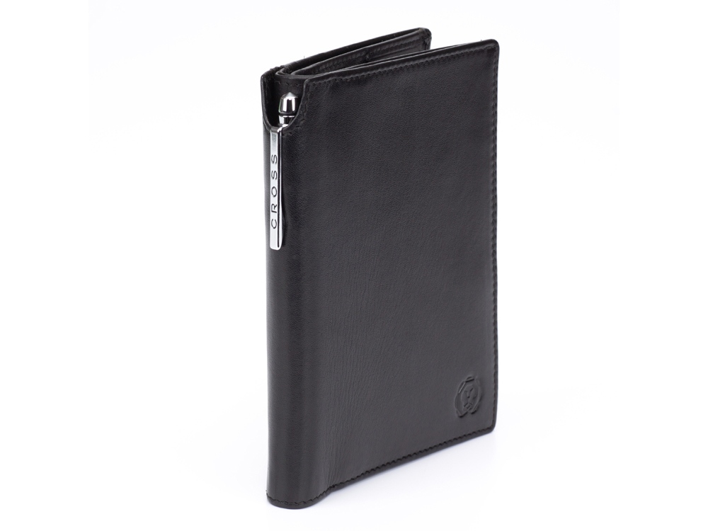 Комплектуется шариковой мини-ручкой Cross ¾ (12,0 см), расположенной в корешке бумажника.