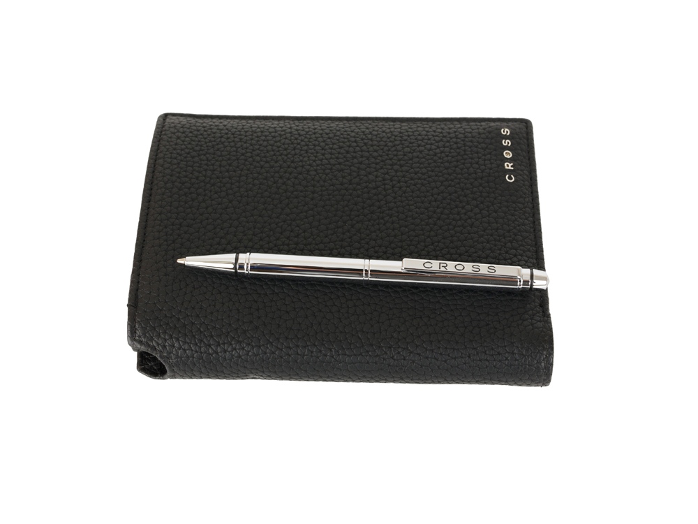 Комплектуется шариковой мини-ручкой Cross ¾ (12,0 см), расположенной в корешке бумажника.