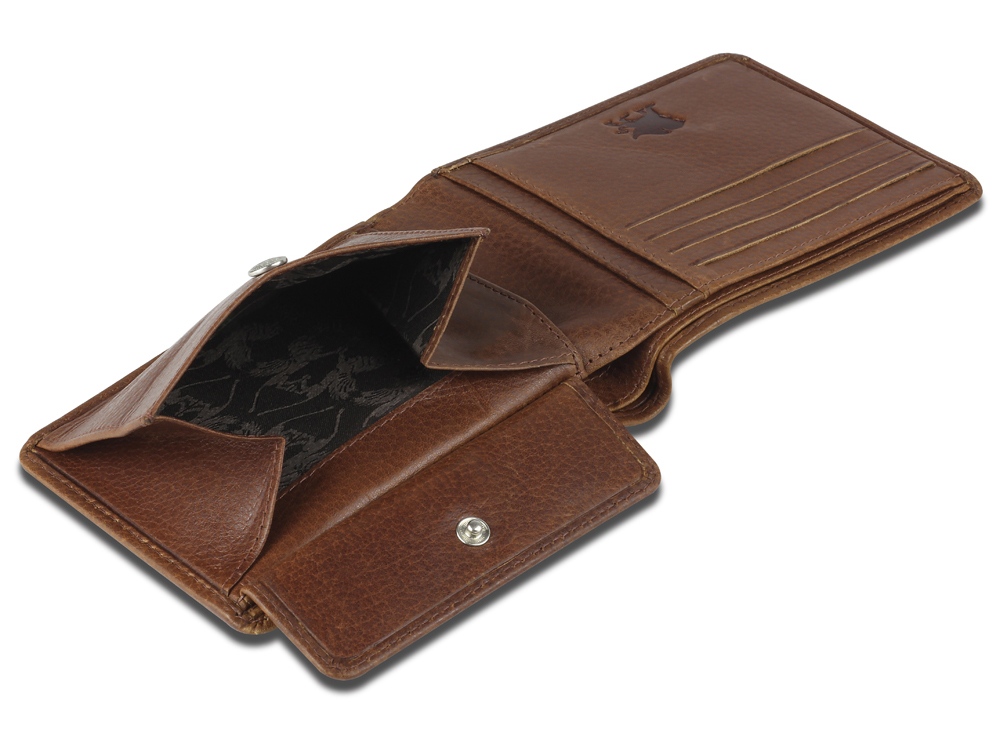 Бумажник M191925101 изготовлен вручную из натуральной телячьей кожи, обеспечивает безопасное хранение купюр, кредитных карт и монет.