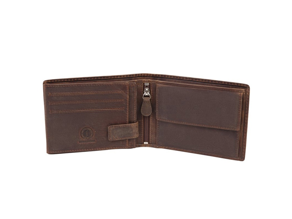 Бумажник мужской серии Yukon, включает в себя семь отделений для кредитных карт, закрываются на кнопки, три боковых скрытых отделения, два боковых скрытых сетчатых отделения, закрывается на кнопку, одно отделение для монет, закрывается на кнопку, одно дополнительное скрытое отделение на молнии, два отделения для купюр, позволяющие хранить купюры в развернутом виде.