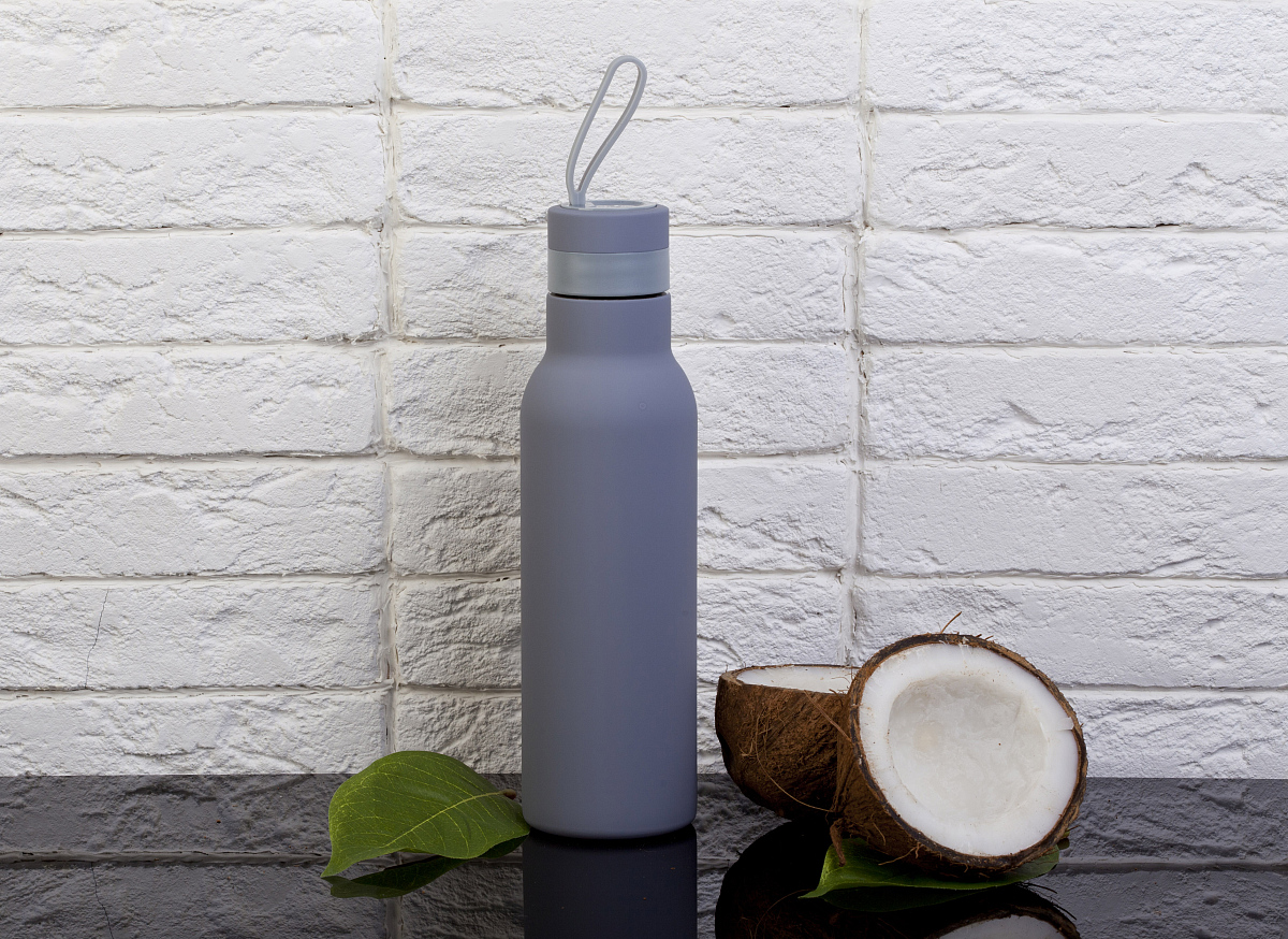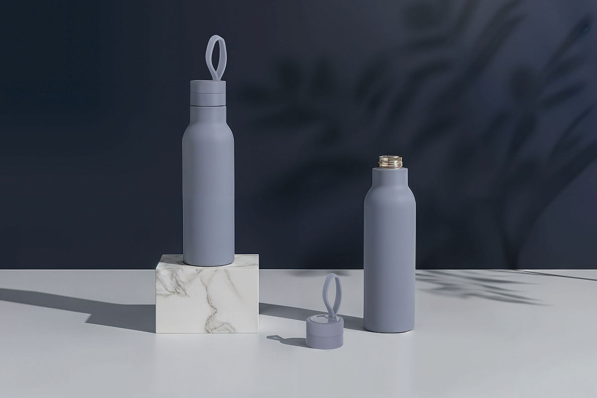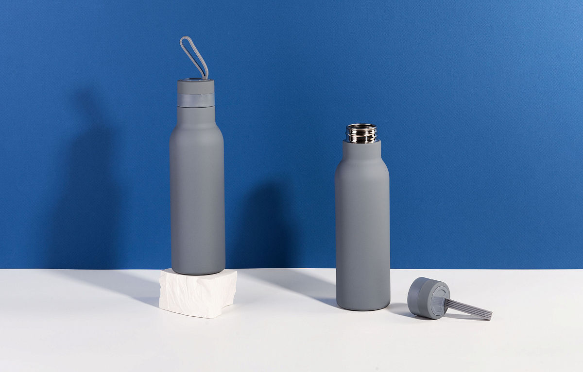 Завинчивающаяся колба защищает от протекания, удобная силиконовая ручка позволяет комфортно носить бутылку.