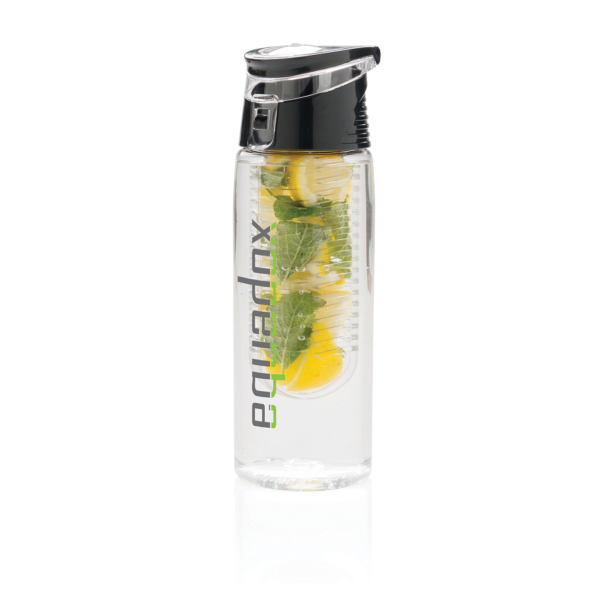 Стильная бутылка для воды Lockable с контейнером отлично подходит для приготовления фруктовых или травяных напитков. Корпус изготовлен из износостойкого и экологичного материала Tritan, а крышка выполнена из ABS-пластика. Защита от проливания. Объем - 700 мл. , высота 23 см., диаметр 7,5 см.