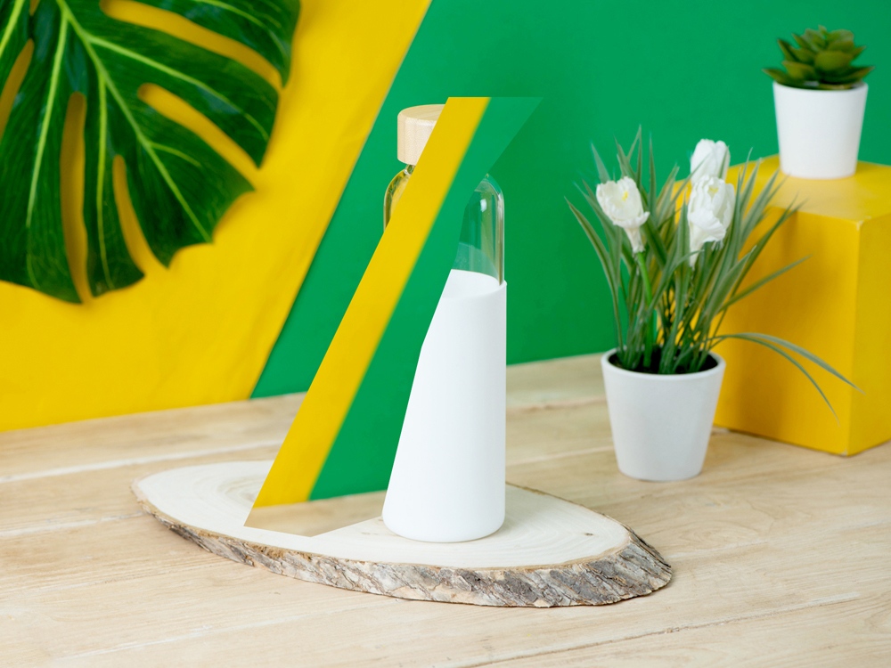 Стильная бутылка для воды сразу привлечет внимание к себе, где бы Вы ее ни достали, так как представляет собой идеальную композицию из трех экологичных материалов. Бутылка выполнена из качественного боросиликатного стекла, поэтому абсолютно не влияет на вкус и запах напитков. Силиконовый чехол поможет защитить бутылку от повреждений и легких падений, также чехол выполняет анти-скользящую функцию. Крышка выполнена из натурального бамбука. Не замораживайте и не используйте бутылку в микроволновке. Бутылка легко моется. Объем 550мл.