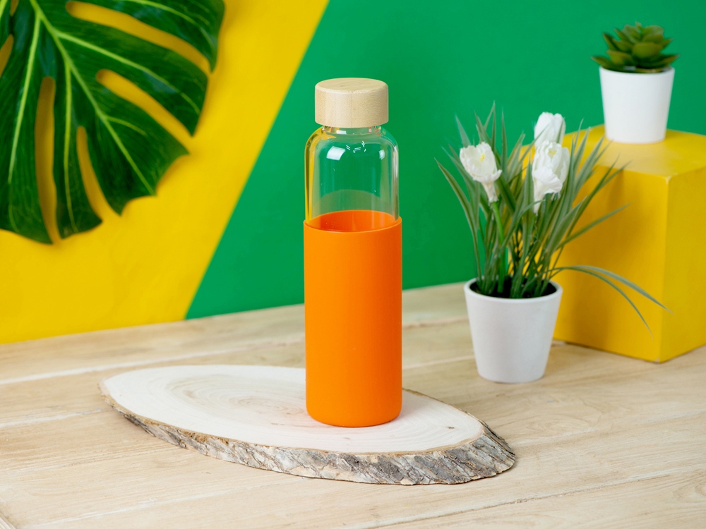 Стильная бутылка для воды сразу привлечет внимание к себе, где бы Вы ее ни достали, так как представляет собой идеальную композицию из трех экологичных материалов. Бутылка выполнена из качественного боросиликатного стекла, поэтому абсолютно не влияет на вкус и запах напитков. Силиконовый чехол поможет защитить бутылку от повреждений и легких падений, также чехол выполняет анти-скользящую функцию. Крышка выполнена из натурального бамбука. Не замораживайте и не используйте бутылку в микроволновке. Бутылка легко моется. Объем 550мл.