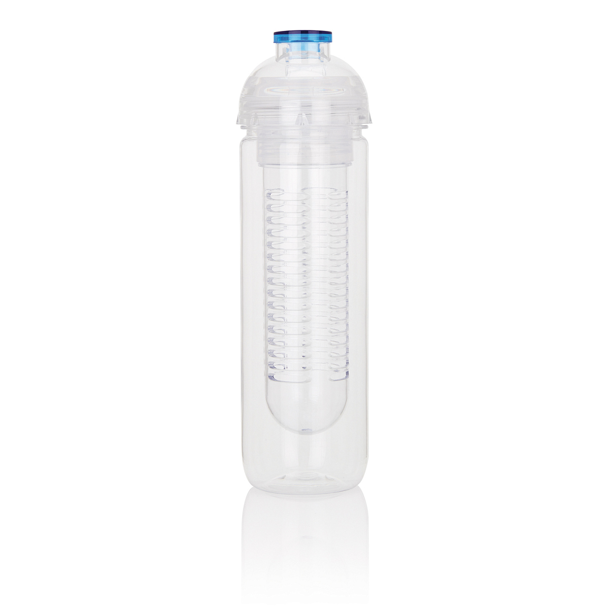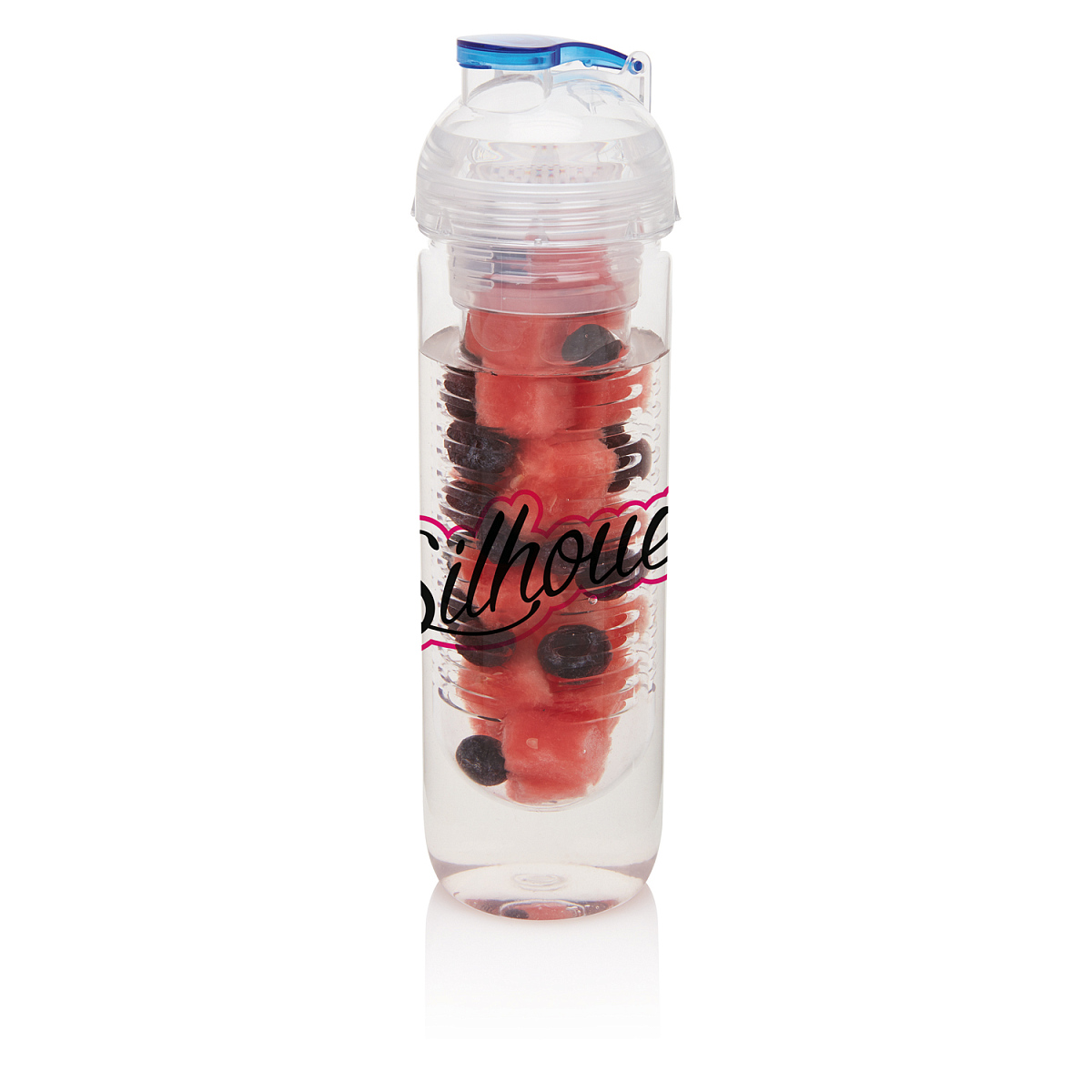 Бутылка для воды объемом 500 мл изготовлена из экологичного материала Tritan, который безвреден для человека, не впитывает запахи и не содержит BPA. В бутылке предусмотрен удобный контейнер для фруктов, который позволит делать вкусные миксы из воды и свежих фруктов, а также в него можно класть кусочки льда для охлаждения напитка. , высота 22,7 см., диаметр 6 см.