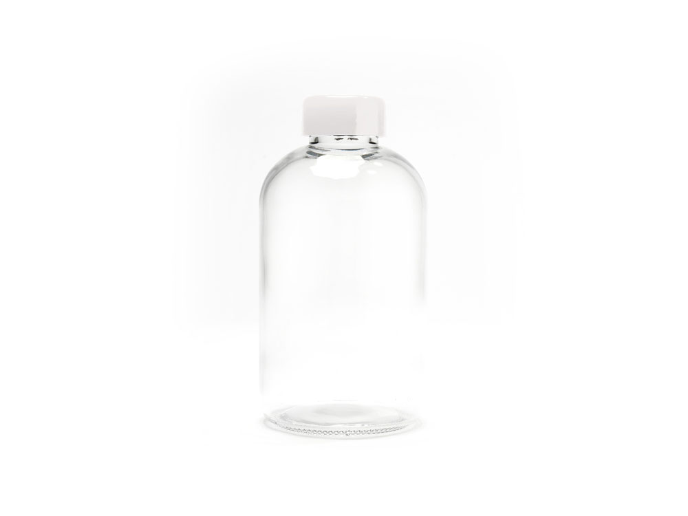 Стеклянная бутылка емкостью 600 мл. включает инновационный неопреновый чехол самых разных цветов с ручкой для переноски.