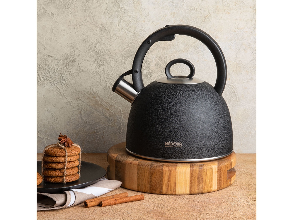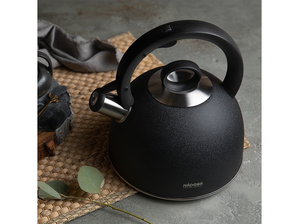 - Безопасный и громкий широко открывающийся свисток позволяет наполнять чайник через носик, не открывая крышку, и вовремя проинформирует, что вода уже вскипела.