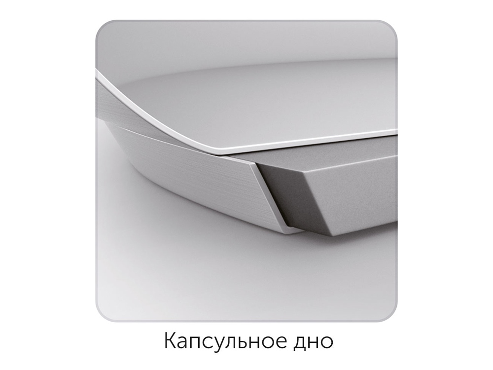 - Прочное трехслойное капсульное дно изделий не деформируется и служит для равномерного распределения тепла по всей площади посуды.