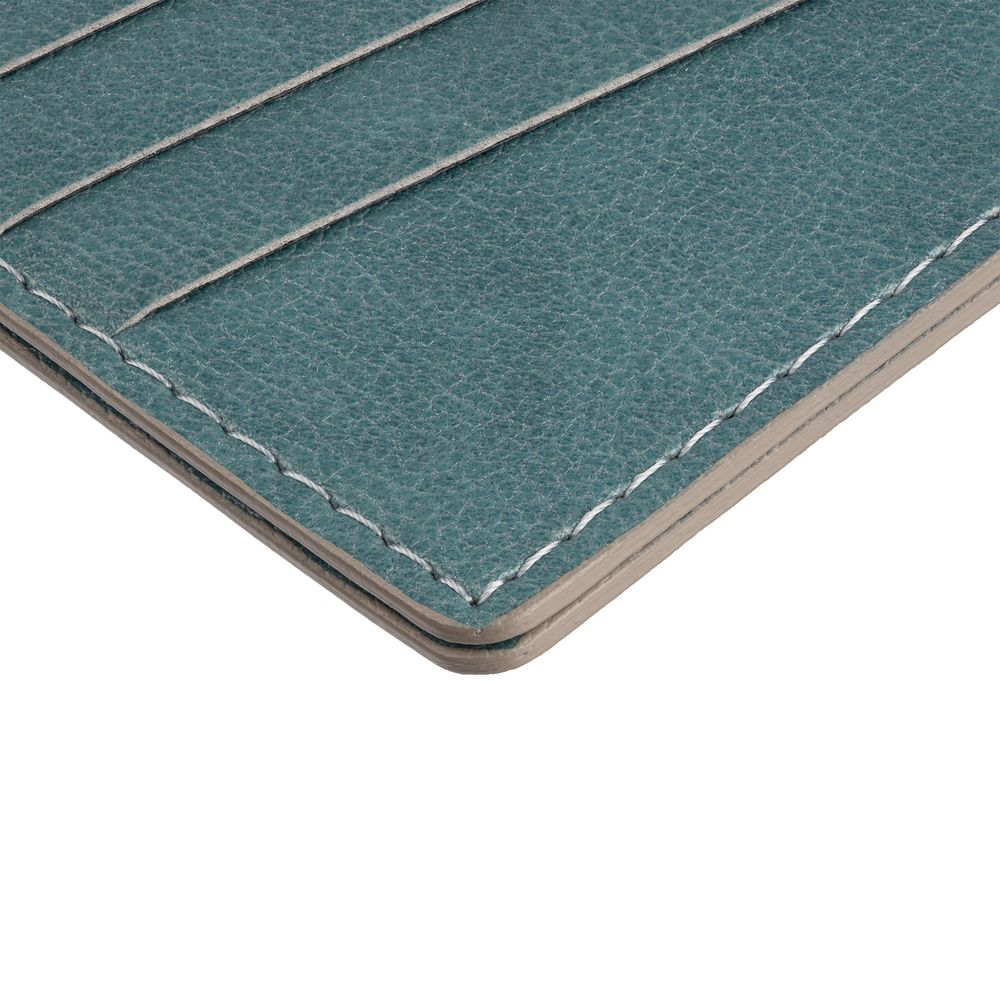 Чехол выполнен из материала Petrus, серый СС, дополнен окрашенным срезом края и внутренним карманом из серого картона. Имеет 4 отделения для кредитных карт и 1 отделение для купюр.