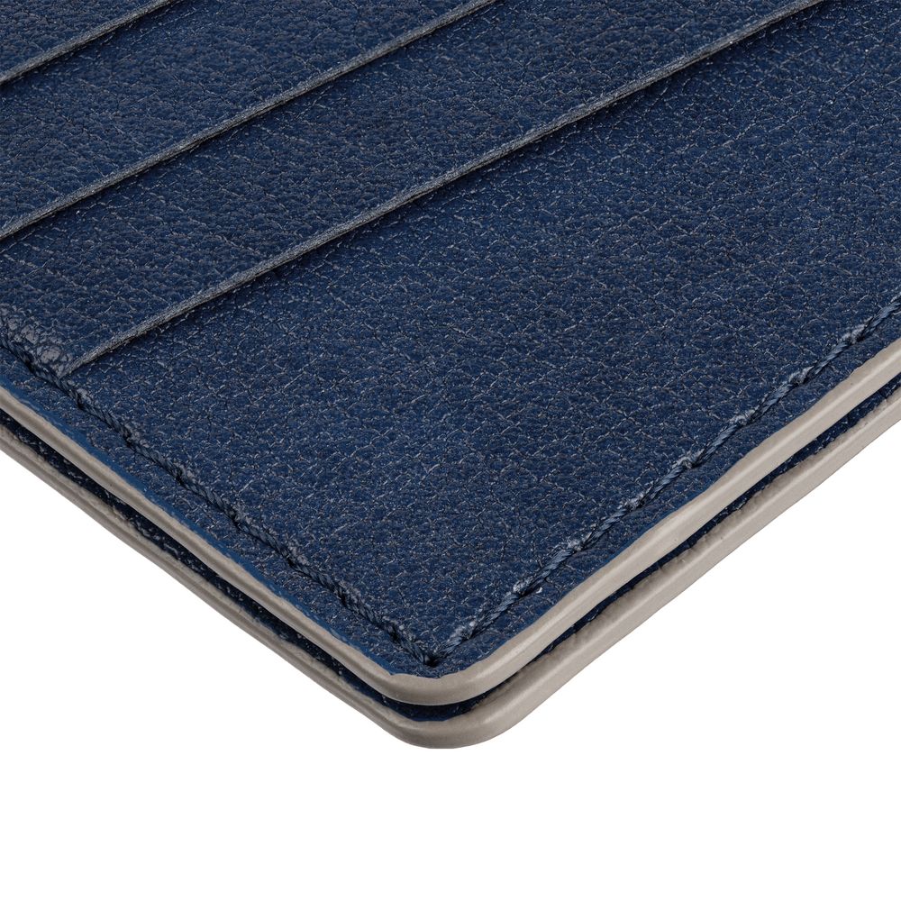 Чехол выполнен из материала Petrus, серый СС, дополнен окрашенным срезом края и внутренним карманом из серого картона. Имеет 4 отделения для кредитных карт и 1 отделение для купюр.
