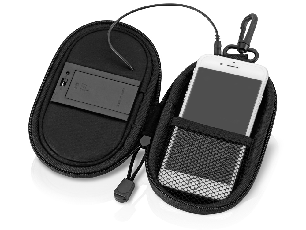 Отличный противоударный чехол для смартфона со встроенным динамиком. Он не только защищает телефон от механических повреждений, но и позволяет слушать музыку. Колонка работает на стандартных батарейках, которые нужно будет купить отдельно.