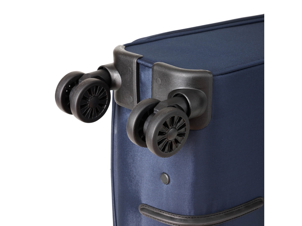 Легкая регулируемая телескопическая алюминиевая ручка и система из четырёх двойных колёс, вращающихся на 360 градусов, обеспечивает мягкий ход и свободное движение во всех направлениях.
