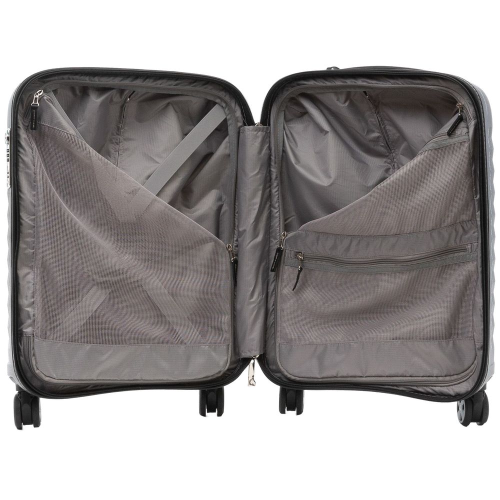 Чемодан E-Lite изготовлен из ударостойкого поликарбоната с интересной ребристой фактурой — смотрится эффектно, а еще противостоит появлению царапин и выгоранию, сохраняя первозданный внешний вид изделия долгое время.