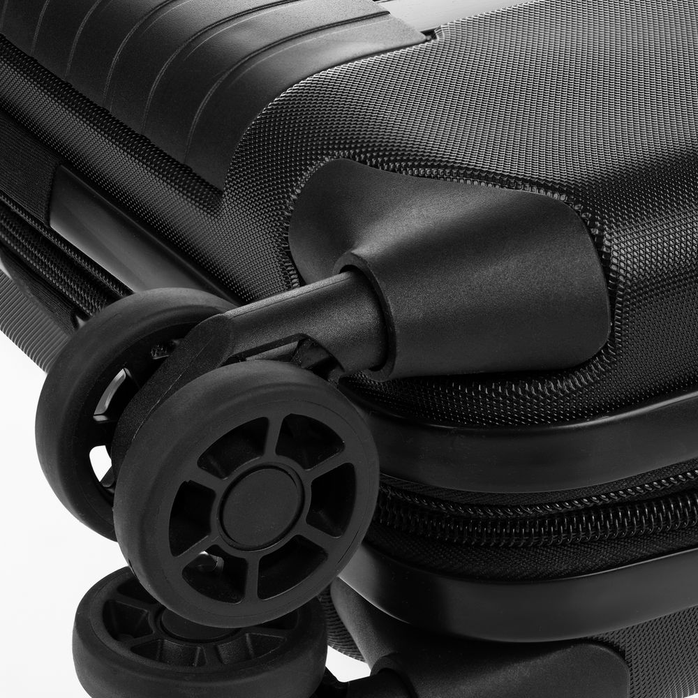 Для изготовления корпуса использован ударопрочный АБС-пластик последнего поколения, а расширение чемодана сделано из очень плотной водонепроницаемой ткани, которая идеально подходит для эффектных принтов больших размеров.
