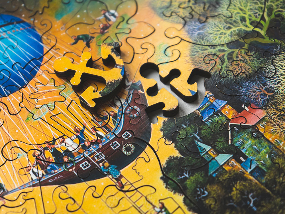 Необычный пазл, который приведет в восторг даже искушенных любителей такого рода головоломок. Некоторые детали этого пазла выполнены в форме фигурок, тематически связанных с изображением — а найти эти символы вам предстоит самостоятельно.