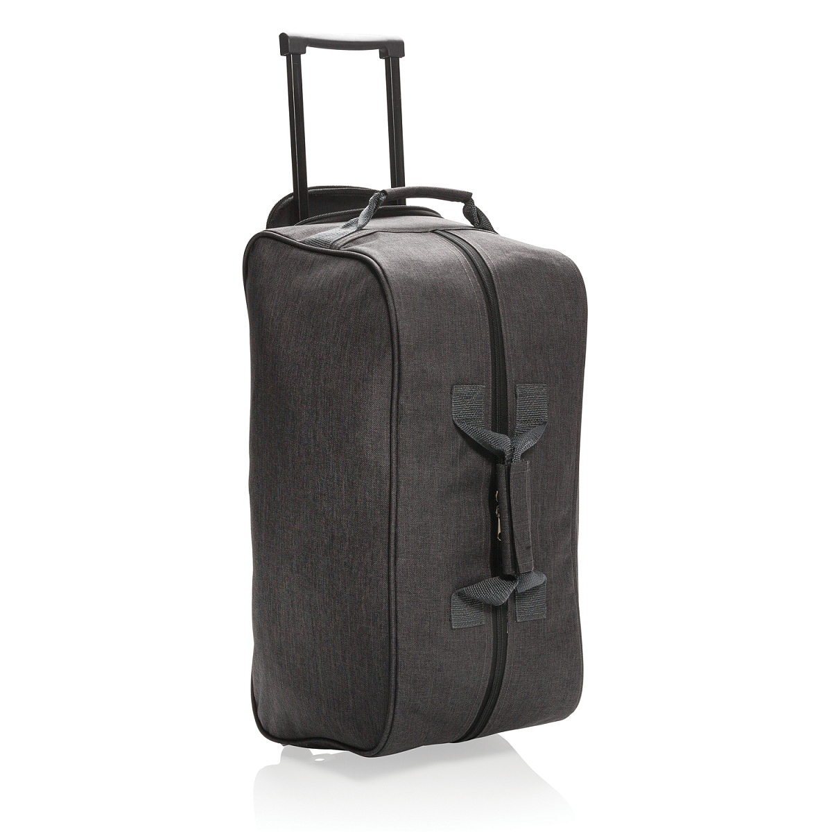 Дорожная сумка Basic изготовлена из прочного меланжевого полиэстера плотностью 600D. В ней предусмотрены удобные колесики и выдвижная ручка, основное вместительное отделение и большой карман на молнии. Длина 55 см., ширина 26 см., высота 28 см., диаметр 0 см.