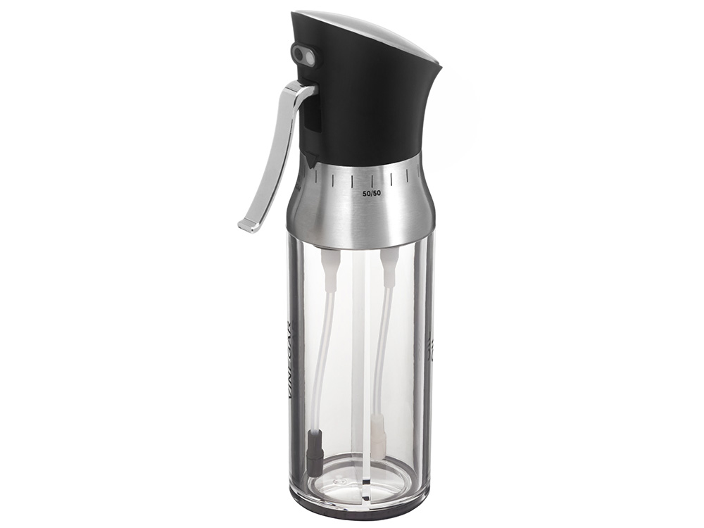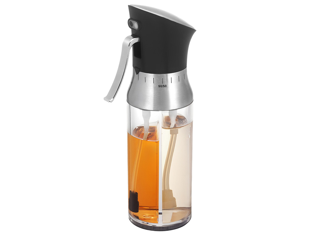 - 2 в 1: две независимые ёмкости в одном корпусе — для масла и уксуса, каждая по 95 мл