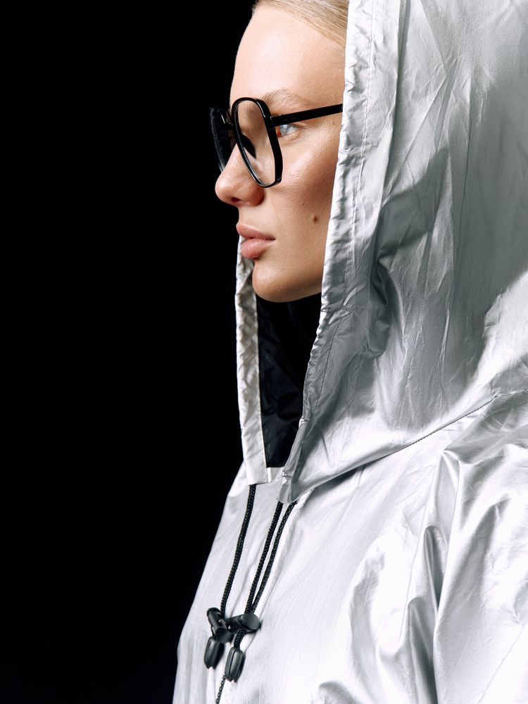 Плащ-дождевик из ткани таффета на молнии с капюшоном. Складывается в мешочек — удобно брать с собой.