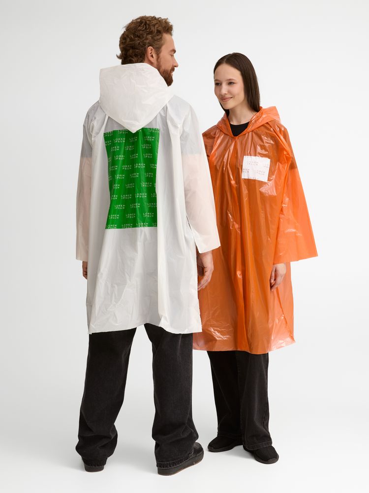 Дождевик-плащ с капюшоном и длинными рукавами из полиэтилена высокого давления (ПВД).