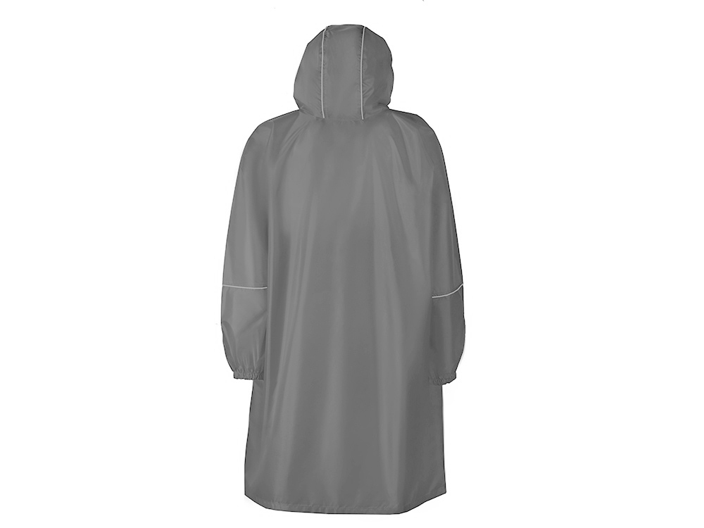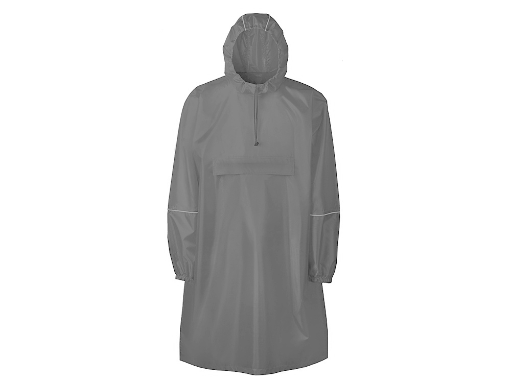 Дождевик - пончо прямого силуэта. Нагрудный карман плаща закрывается на молнию, которая дополнительно защищена клапаном, а еще в него можно полностью убрать дождевик. На дне кармана — ручка-петелька, которая в сложенном виде может использоваться для подвешивания.