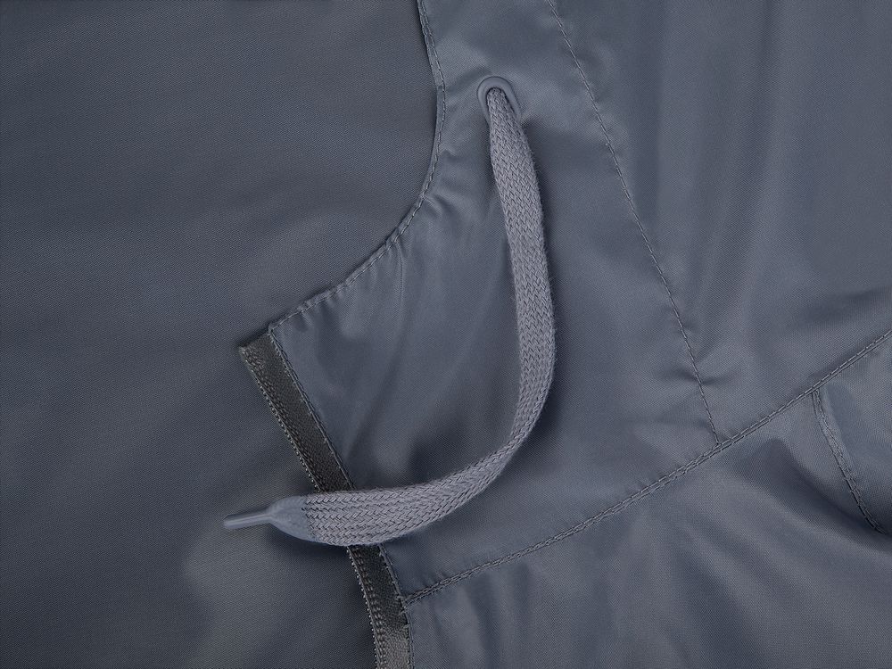 Плащ-дождевик на молнии с капюшоном из ткани таффета с полиуретановой пропиткой для защиты от сильного дождя.
