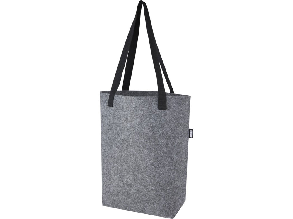Практичная эко-сумка из мягкого и прочного высококачественного фетра, переработанного по стандарту GRS. Имеет длинные тканые ручки из хлопка (30 x 2,5 см) для оптимального комфорта при ношении и широкое дно, обеспечивающее максимальное пространство для хранения.