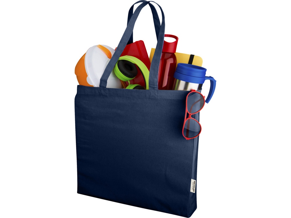 Эко-сумка Odessa, изготовленная из 100% переработанного хлопка, сертифицированного по стандарту GRS, создана для удобного ношения благодаря ручкам на плечо длиной 30 см и большому основному отделению с клинчиком. Независимо от того, хотите ли вы носить с собой тяжелые книги или продукты, эта сумка предназначена для удовлетворения любых потребностей. Методы печати, доступные для этой эко-сумки, также сертифицированы по стандарту GRS, что гарантирует прозрачность и сертификацию всей цепочки поставок. Хлопок плотностью 220 г/м² обеспечивает долговечность и надежность и позволяет переносить вес до 10 кг. Сделано в Индии. Recycled cotton, 220 g/m2.