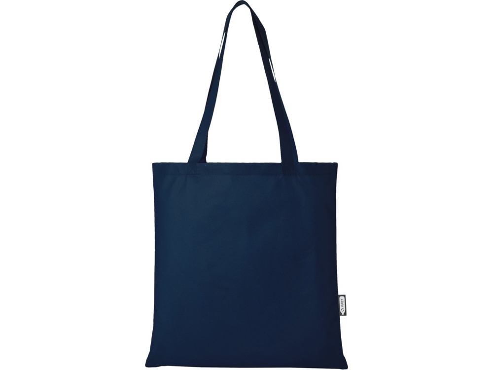 Большая эко-сумка Zeus из переработанных материалов, сертифицированных GRS, изготовленная из прочного и устойчивого к разрыву переработанного PET-пластика, является идеальным и более экологичным вариантом для ярмарок или конференций. Тонкий дизайн делает эту модель элегантной и подходящей для ношения легких предметов, например, блокнота и ручки. Ручки имеют длину 29 см, поэтому эко-сумку легко носить через плечо. Прочность до 5 кг. GRS certified recycled polyester, 80 g/m2.