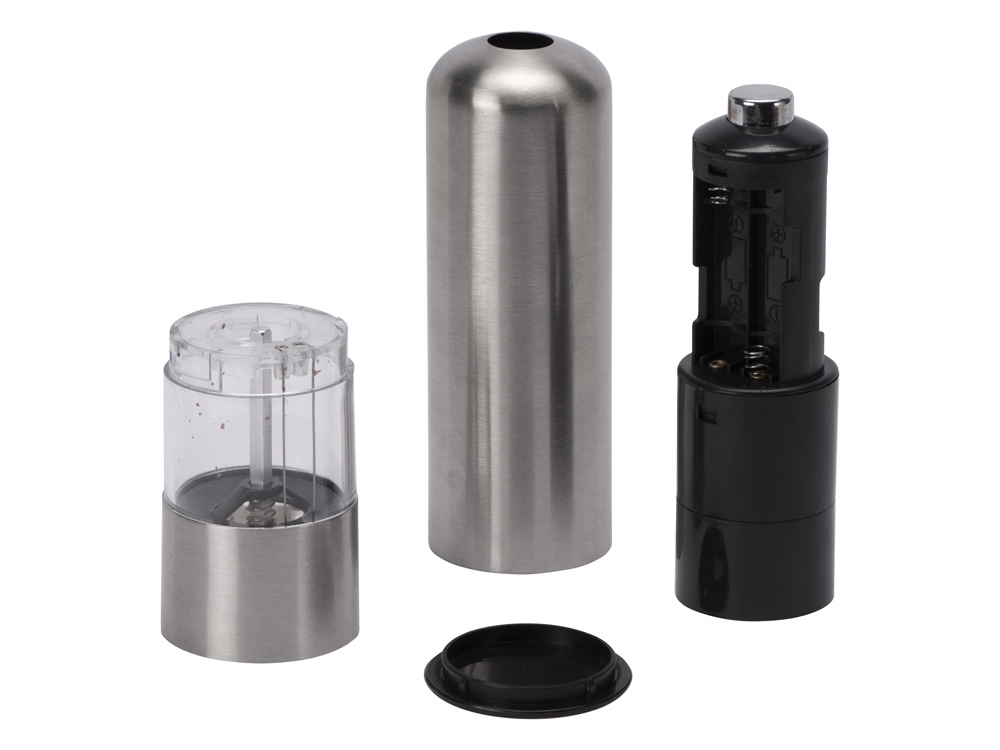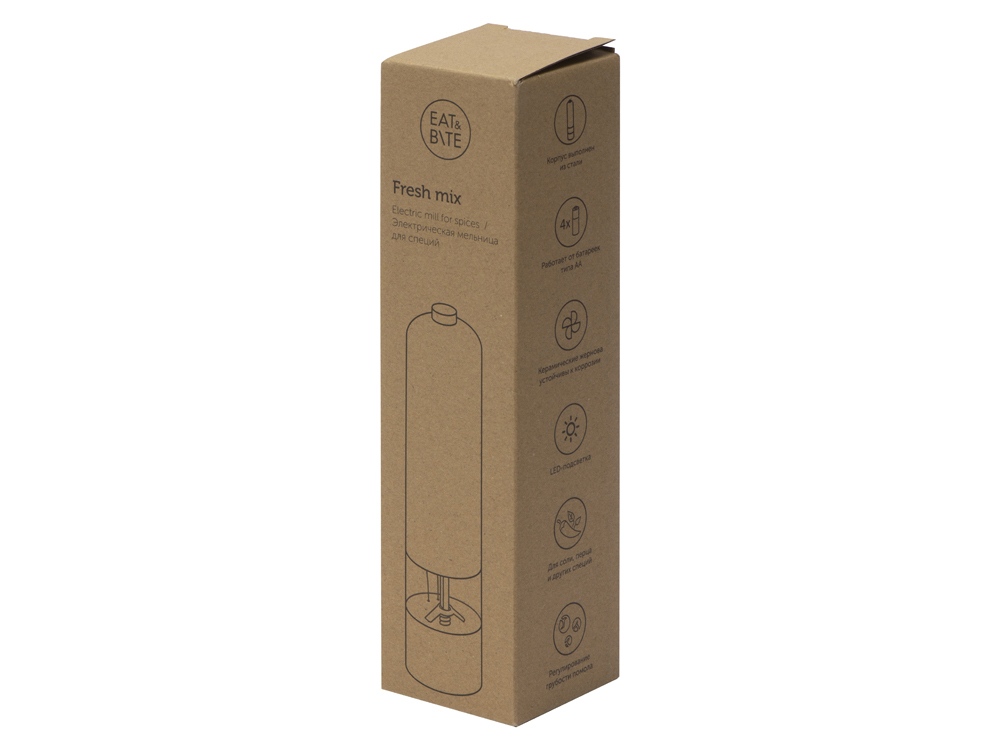 Электрическая мельница Fresh mix от Eat&Bite подходит для измельчения крупной соли, перца и других специй. Для этого достаточно просто нажать на кнопку на корпусе устройства.