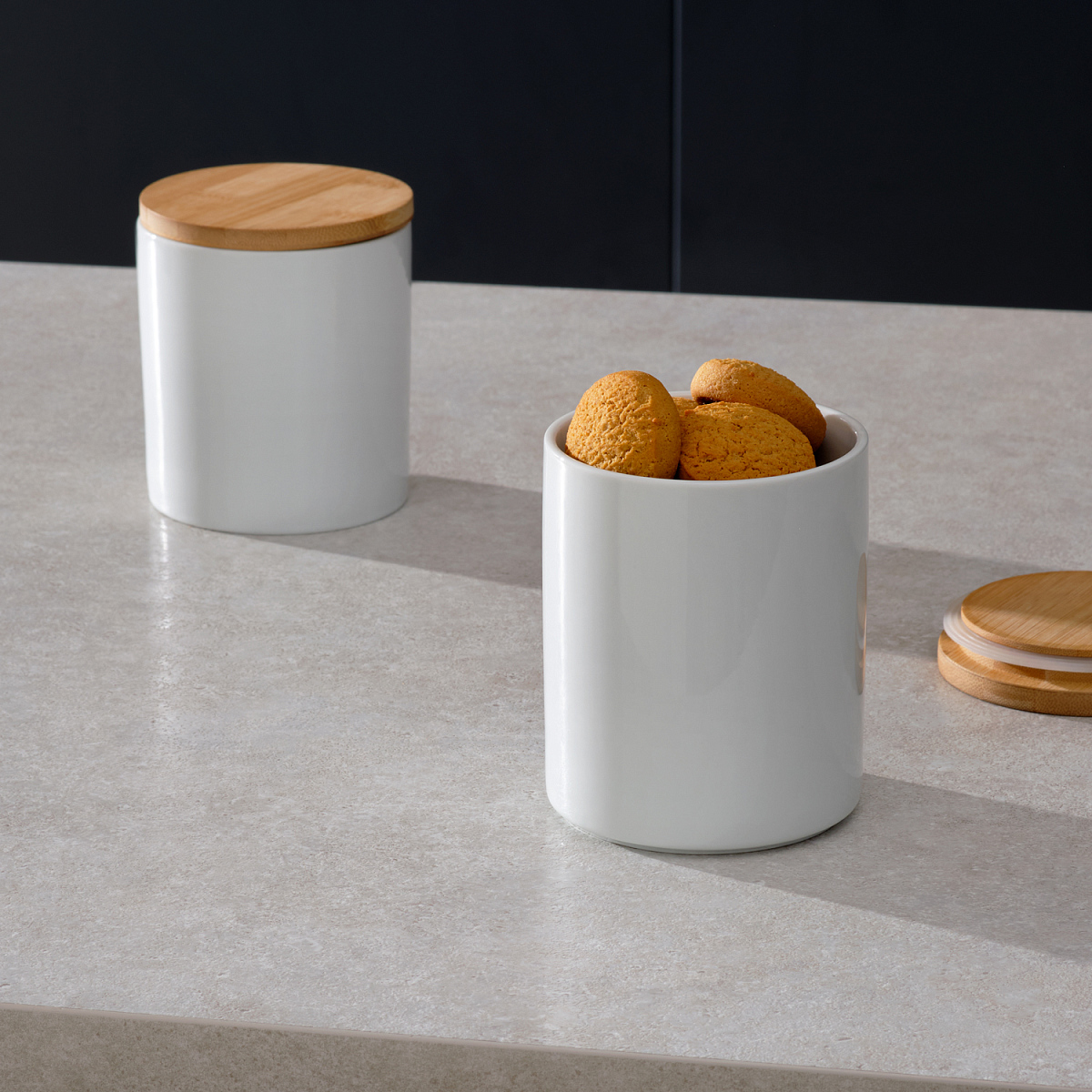 Контейнер прекрасно подойдет для хранения различных сыпучих продуктов: чая, кофе, сахара, круп и многого другого. Емкость классической круглой формы не только поможет хранить разнообразные сыпучие продукты, но и стильно дополнит интерьер кухни.