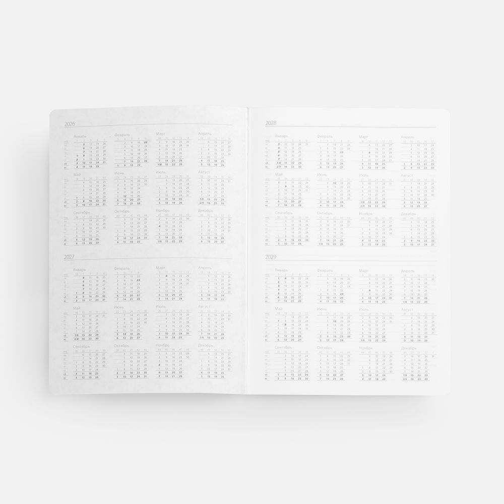 Гибкая обложка выполнена из материала Soft Touch Ultra, зеленый FF и Latte, зеленый FF (внутренняя часть обложки). Внутри корешка — специальное место для крепления ручки размером до 15х1 см.