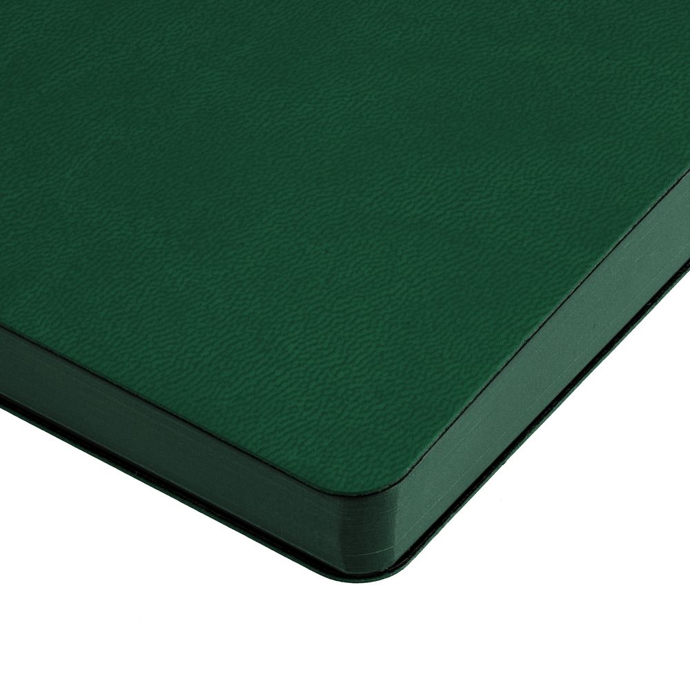 Ежедневник с гибкой обложкой, выполнен из материала Latte, зеленый, дополнен ляссе в цвет обложки.