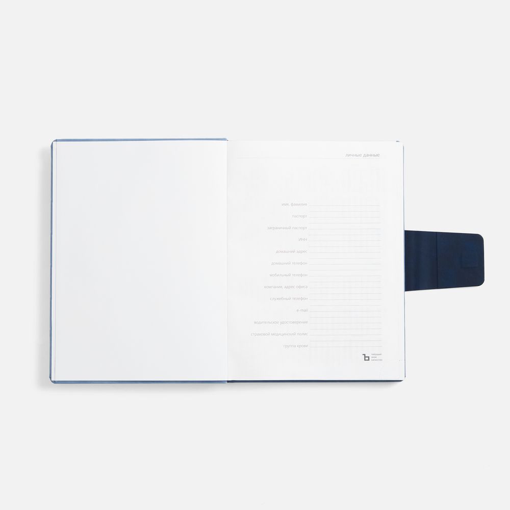 Ежедневник Grande Strap на заказ, датированный, голубой можно заказать в нашей компании по самой доступной цене от рублей.