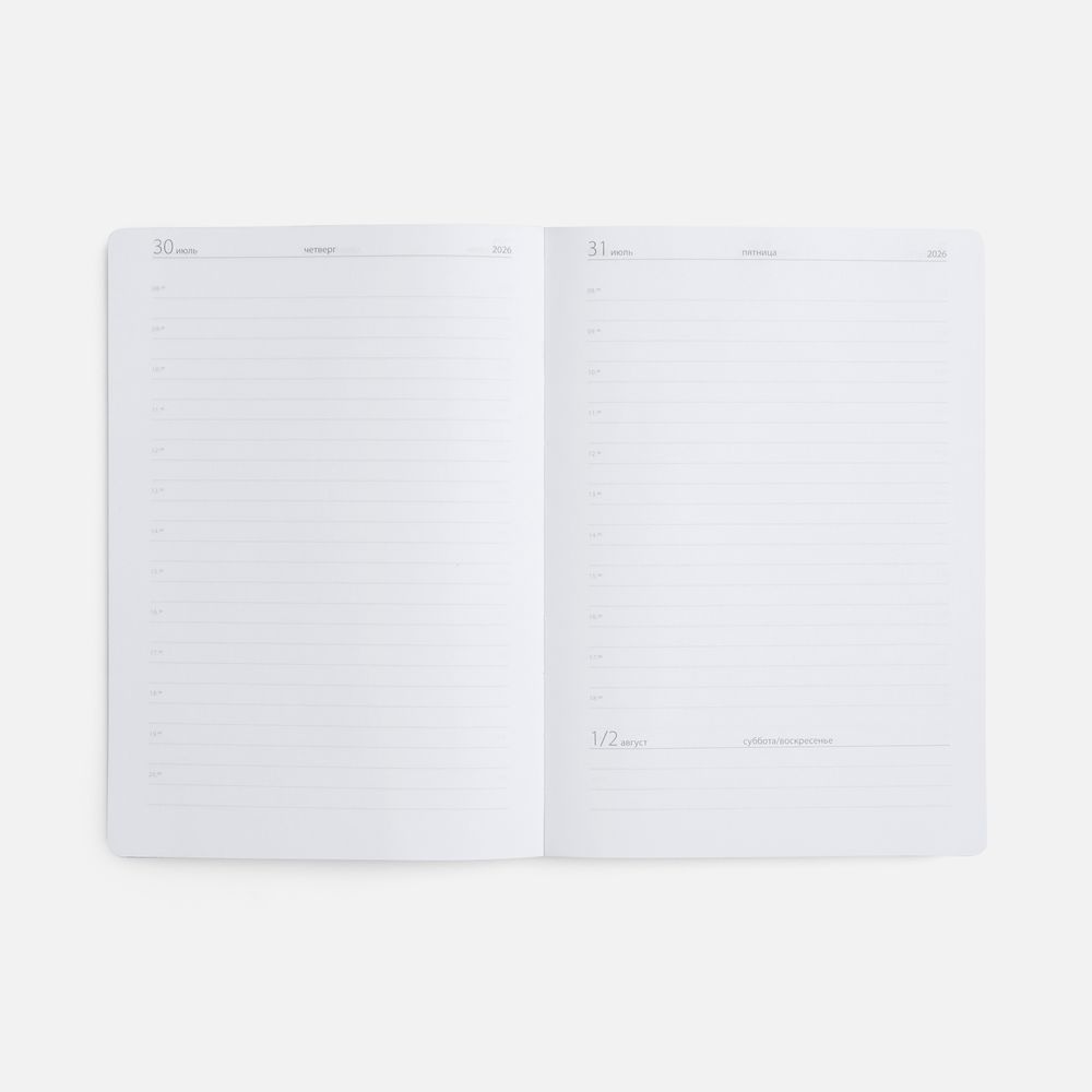 Ежедневник с полутвердойобложкой выполнен из материала Nice Touch, красный PP, и дополнен резинкой шириной 1 см с металлическим шильдом и ляссе красного цвета.