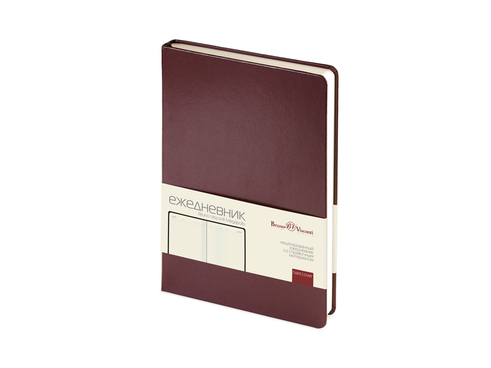 Ежедневник выпускается в универсальном формате А5. Размер обложки – 144*215 мм. В недатированном блоке для записей 320 страниц из тонированной бумаги бежевого цвета. Бумага плотностью 70 г/м2. На 16 листах представлен значительный объем справочной информации на русском языке, полезной для бизнеса и повседневной жизни. Дни недели указаны сокращенно на русском языке.