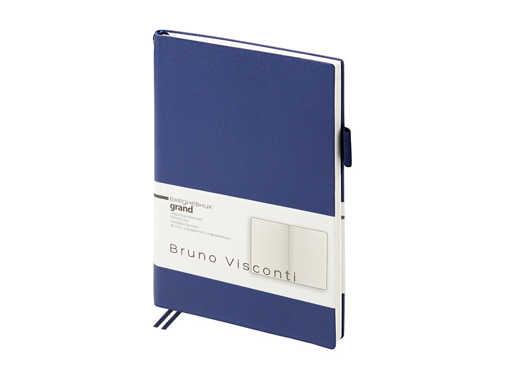 Мягкая, гибкая обложка с необычной фактурой, приятной на ощупь, петля под ручку, двойное ляссе, стандартный формат А5 — все это ежедневник Grand. А благодаря оригинальному способу фиксации ляссе на корешке ежедневник получил новое звучание. Такая фишка придется по вкусу всем, кто придает большое значение деталям. Недатированный блок изготовлен из бежевой бумаги плотностью 80 г/кв.м. Ежедневник имеет справочную информацию на 14 страницах.