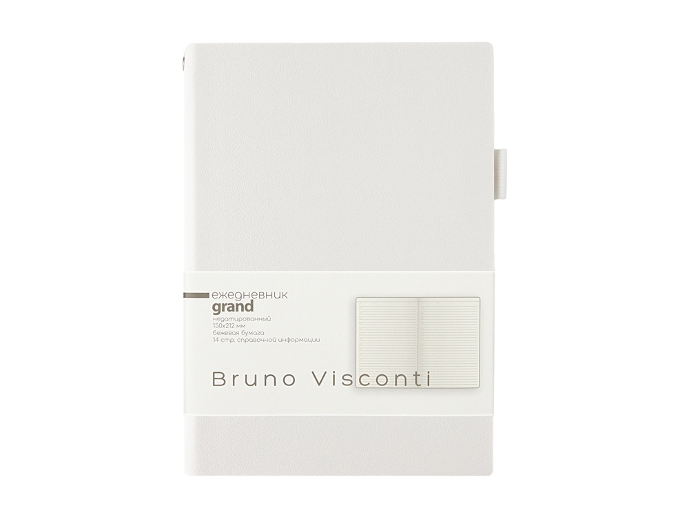 Мягкая, гибкая обложка с необычной фактурой, приятной на ощупь, петля под ручку, двойное ляссе, стандартный формат А5 — все это ежедневник Grand. А благодаря оригинальному способу фиксации ляссе на корешке ежедневник получил новое звучание. Такая фишка придется по вкусу всем, кто придает большое значение деталям. Недатированный блок изготовлен из бежевой бумаги плотностью 80 г/кв.м. Ежедневник имеет справочную информацию на 14 страницах.