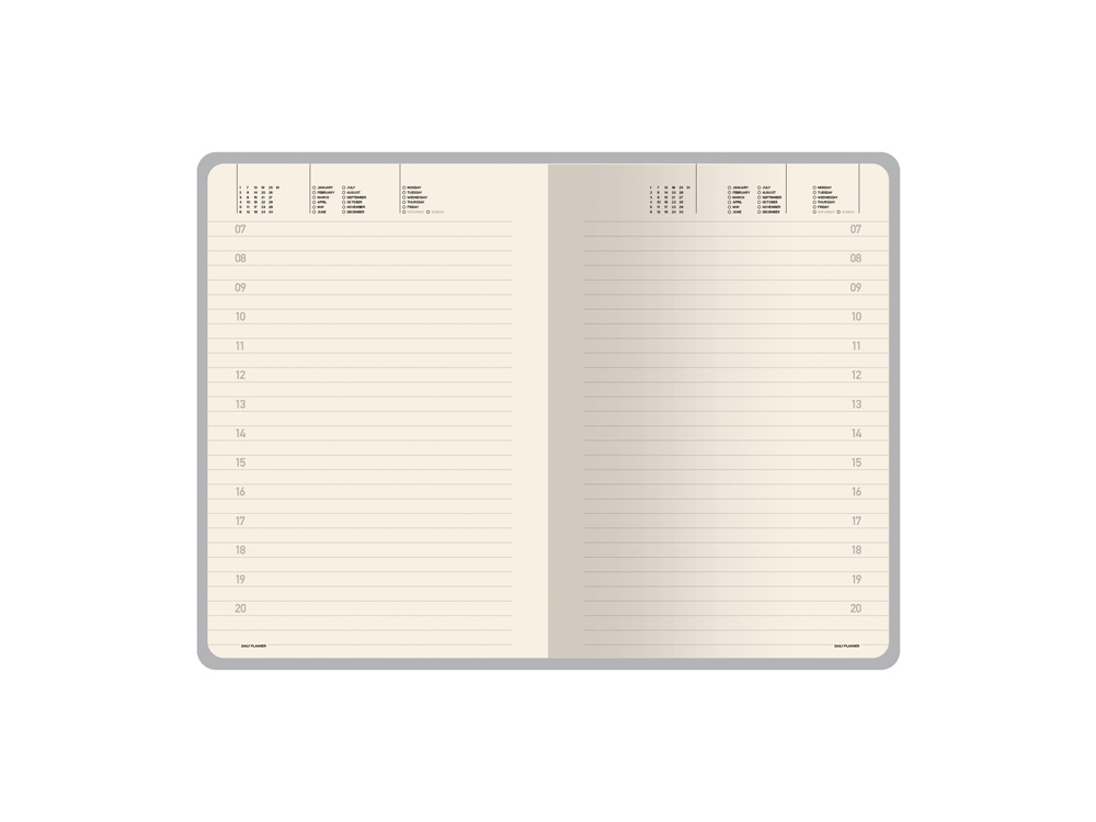 Недатированный ежедневник Loft формата А5 от Bruno Visconti - идеальный баланс между стилем и практичностью. Твердая обложка из высококачественной экокожи максимально повторяет фактуру натуральной кожи. Скругленные углы блока и обложки позволяют уберечь листы от замятий и придают ежедневнику утонченности и благородства. Для удобства навигации предусмотрена закладка-ляссе в цвет обложки. Внутренний блок ежедневника содержит справочную информацию и блок для ежедневного планирования в линейку с указанием времени суток (интервал в один час). Блок изготовлен из бежевой бумаги плотностью 70 г/кв.м.