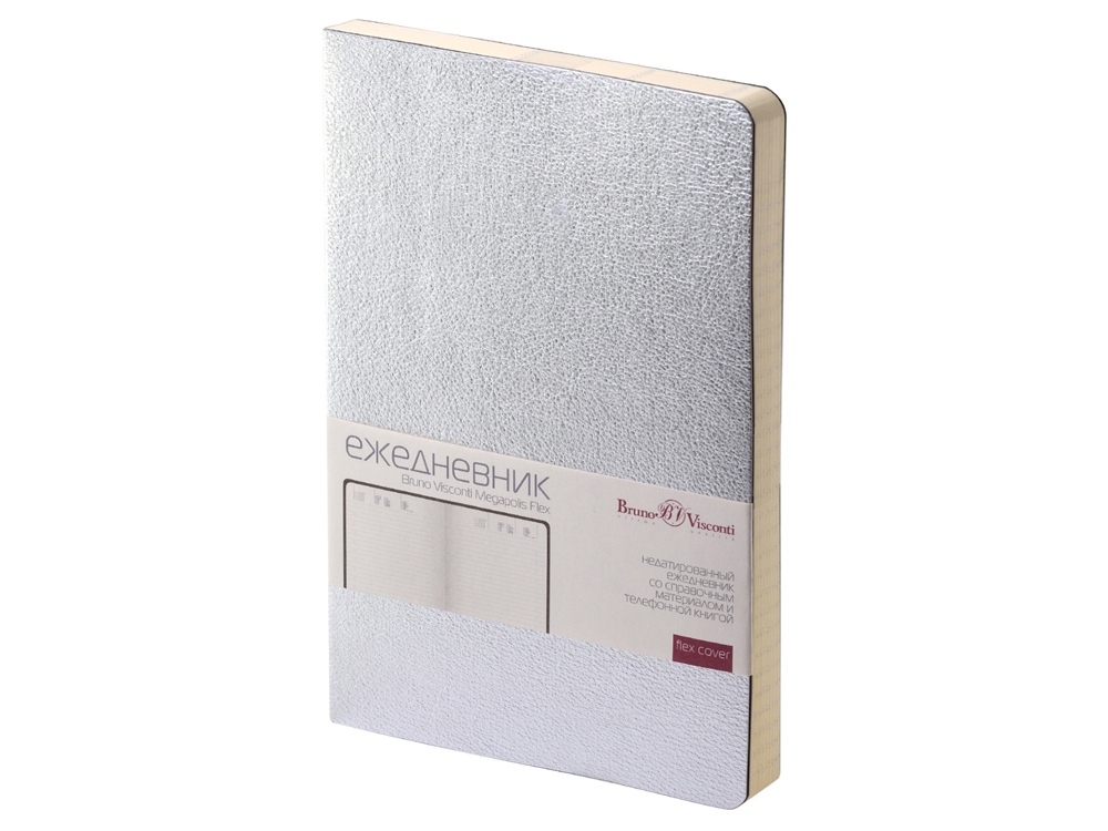 Недатированный ежедневник Megapolis Flex от бренда Bruno Visconti - это качественный корпоративный подарок по выгодной цене, произведенный специально под персонализацию. Представлен в универсальном формате А5 и состоит из 272 страниц. Элегантная закругленная flex обложка из гладкого кожзама имеет гибкую конструкцию и приятна на ощупь. А интегральный переплет позволяет сэкономить место в деловой сумке или портфеле – ежедневник можно просто свернуть в трубку или согнуть пополам. В ежедневнике Megapolis Flex есть полезная справочная информация и телефонная книга, а также страницы для записи идей, мыслей и составления рабочих планов. Для изготовления страниц используется качественный бежевый офсет повышенной плотности (70 г/кв м). Блок не привязан к конкретным датам – они указываются в выделенном поле вверху страницы. Тонированная бумага не дает глазам утомиться даже при длительной работе. Все ежедневники от бренда Bruno Visconti можно персонализировать с помощью тиснения обложки - золотой или серебряной фольгой. Наши ежедневники помогут быть успешным и эффективным в карьере и повседневной жизни!