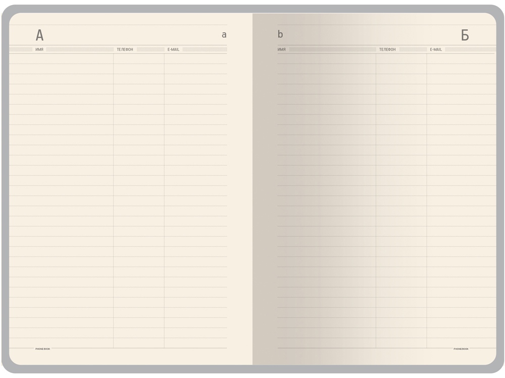 Недатированный ежедневник Megapolis Flex Nebraska формата А5 - идеальный помощник в деле планирования рабочего времени для тех, кто ценит рационализм и функциональность. Гибкая (flex) обложка из искусственной кожи с благородной глянцевой поверхностью и практичный книжный переплет надежно предохраняют блок от механических повреждений. Закругленные углы блока и обложки - верх утилитарности и одновременно икона стиля. Ничего лишнего, ни одной необоснованной детали, и при этом сколько элегантности! Внутренний блок выполнен из бежевой бумаги плотностью 70 г/кв.м и имеет разделы: • для планирования с линовкой и указанием времени с интервалом в один час; • страница для персональных данных; • справочная информация на 19 страницах (аэропорты Европы, штрихкоды, международные телефонные коды, цифровые автомобильные коды, энергетическая и питательная ценность продуктов, национальные и религиозные праздники, единицы измерения, страны мира, размеры одежды, форматы бумаги и др.); • телефонная книга на 19 страницах.