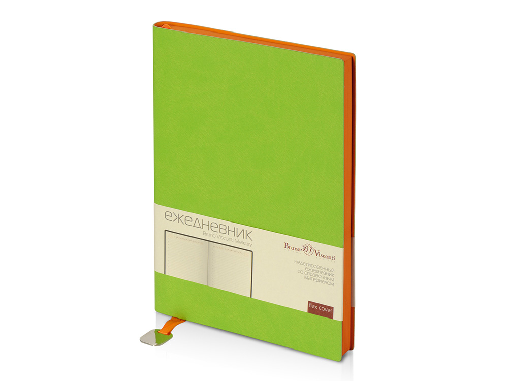 Недатированный ежедневник Mercury от бренда Bruno Visconti - это качественный корпоративный подарок по выгодной цене, произведенный специально под персонализацию. Представлен в современном формате А5. Обложка ежедневника выполнена из современного переплетного материала с двойной закладкой с шильдом. Цветной край блока, а также отделка листов цветными деталями - это переплетение технологических новинок и оригинальных дизайнерских решений. В ежедневнике Mercury есть полезная справочная информация, а также 272 страницы для записи идей, мыслей и составления рабочих планов. Для изготовления страниц используется качественный белый офсет повышенной плотности (70 г/кв м), которая производится в Японии и подходит для всех видов чернил. Современный деловой ежедневник Mercury с яркой индивидуальностью не оставит незамеченным и своего владельца. Эти стильные и запоминающиеся модели представлены в широкой цветовой гамме и имеют массу интересных деталей оформления. Продается в индивидуальном слив-боксе. Все ежедневники от бренда Bruno Visconti можно персонализировать с помощью тиснения обложки - золотой или серебряной фольгой. Наши ежедневники помогут быть успешным и эффективным в карьере и повседневной жизни!