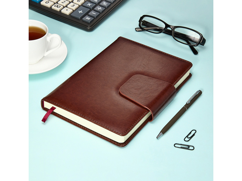 Недатированный ежедневник Prestige от бренда Bruno Visconti - это качественный корпоративный подарок по выгодной цене, произведенный специально под персонализацию. Представлен в универсальном формате А5 и содержит 320 страниц. Не лишенный солидности и респектабельности новый ежедневник Prestige от Bruno Visconti идеально дополняет имидж современных профессионалов. Твердая обложка выполнена из гладкого кожзама, неотличимого от кожи fiore vegetale. Скругленный корешок и уголки обложки в сочетании с магнитным клапаном делают ежедневник Prestige невероятно стильным аксессуаром. Глянцевая поверхность материала акцентирована контрастной белой строчкой вдоль закругленного края. Функциональная деталь - широкий магнитный клапан. Декоративный хлястик надежно фиксирует блок, исключая случайное раскрывание в сумке. В ежедневнике Prestige есть полезная справочная информация на русском языке, а также страницы для записи идей, мыслей и составления рабочих планов. Дни недели указаны сокращенно на английском языке. Для изготовления страниц используется качественный бежевый офсет повышенной плотности (70 г/кв м), который производится в Японии и подходит для всех видов чернил. Разметка блока с указанием времени позволяет планировать дела с точностью до 1 часа. Ежедневники от бренда Bruno Visconti можно персонализировать с помощью всех видов тиснения обложки. Наши ежедневники помогут быть успешным и эффективным в карьере и повседневной жизни!