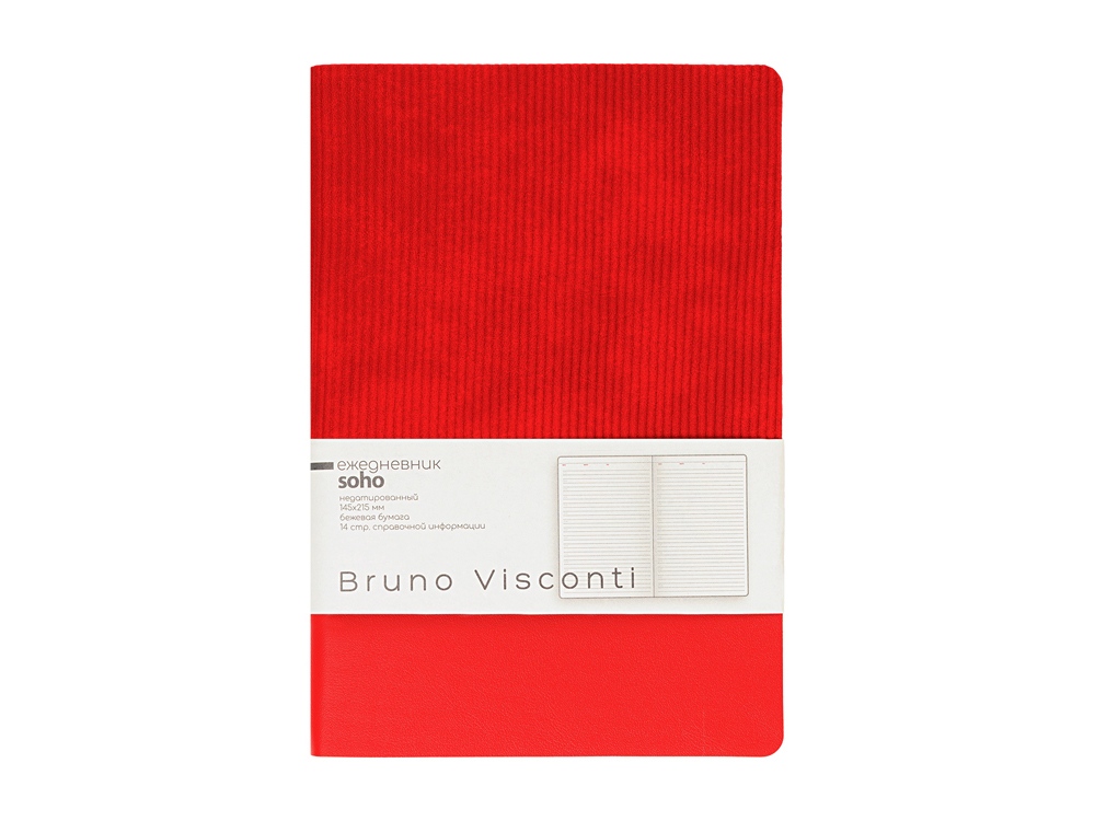 Гибкая мягкая обложка с эффектом муара, тактильно приятная с рифленой фактурой – главное украшение недатированного ежедневника Soho ТМ Bruno Visconti. Ляссе в цвет обложки как легкое дополнение к строгому, но элегантному образу. Никаких дополнительных деталей, а сколько благородства. Ежедневник формата А5 имеет внутренний блок из 272 страниц. Блок изготовлен из бежевой бумаги плотностью 70 г/м2 и содержит: Покрытие soft touch придает обложке мягкость и создает приятные тактильные ощущения в работе с ежедневником. • раздел для планирования с линовкой и указанием времени с интервалом в один час; • страница для персональных данных; • страницы для планирования рабочих и личных дел по месяцам; • 10 страниц оригинальной справочной информации (вино и еда, мода, драгоценности, как выбирать подарок, методы борьбы со стрессом).
