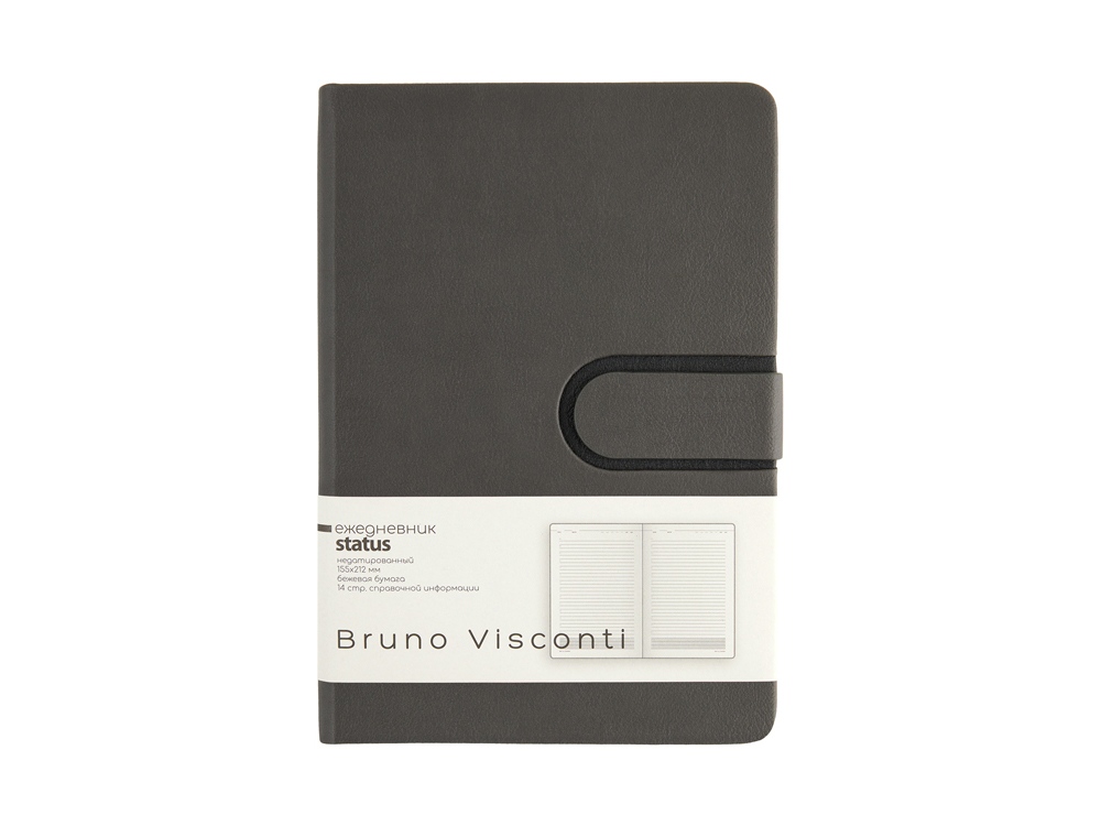Недатированный ежедневник Status формата А5 для тех, кто предпочитает статусный, брутальный деловой аксессуар с неизбитым дизайнерским решением. Твердая обложка из искусственной кожи, ляссе, скругленные уголки блока и обложки - основные характеристики утилитарного ежедневника, которые позволяют ему выглядеть респектабельно и сохранить блок с деловыми записями в прекрасном состоянии. Оригинальное оформление магнитного хлястика - контрастная выемка - вносит в лаконичное исполнение ежедневника Status свою изюминку. Блок изготовлен из бежевой бумаги плотностью 80 г/кв.м и содержит 256 страниц в линовку для планирования рабочего времени, а также интересную и полезную справочную информацию.