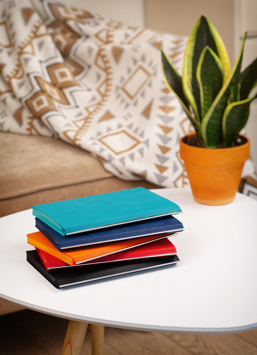 Притягивает внимание, офисные принадлежности и желание что-нибудь срочно записать. Минималистичный в оформлении ежедневник «Аскона» представлен в ярких насыщенных цветах с цветным срезом. Гибкая обложка имеет фактуру натуральной кожи, её дополняет металлическая планка корешка. Блок из плотной тонированной бумаги в 256 страниц удобно использовать с чёрной лентой-ляссе в цвет среза ежедневника.