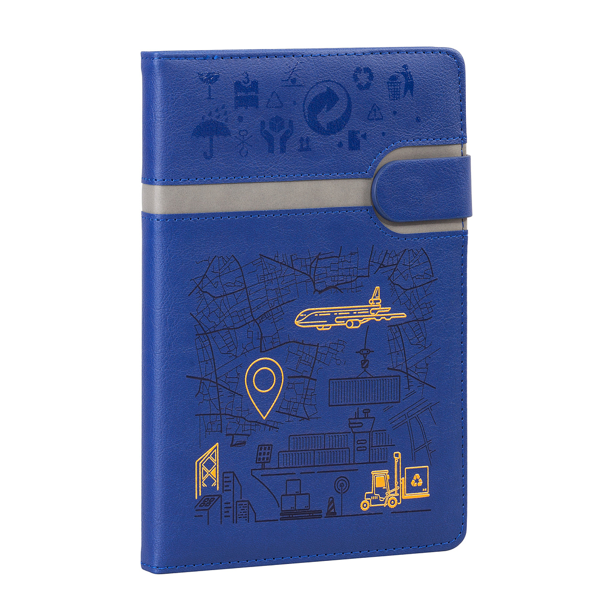Матовая плотная обложка с выраженной текстурой натуральной кожи дополнена стильным вырезом – полосой серого цвета с прошивкой по периметру. Внутренний блок включает 256 страниц из бумаги плотностью 70 гр., срезом в цвет обложки и закладкой-ляссе, благодаря которой его удобно сразу открывать на нужной странице.