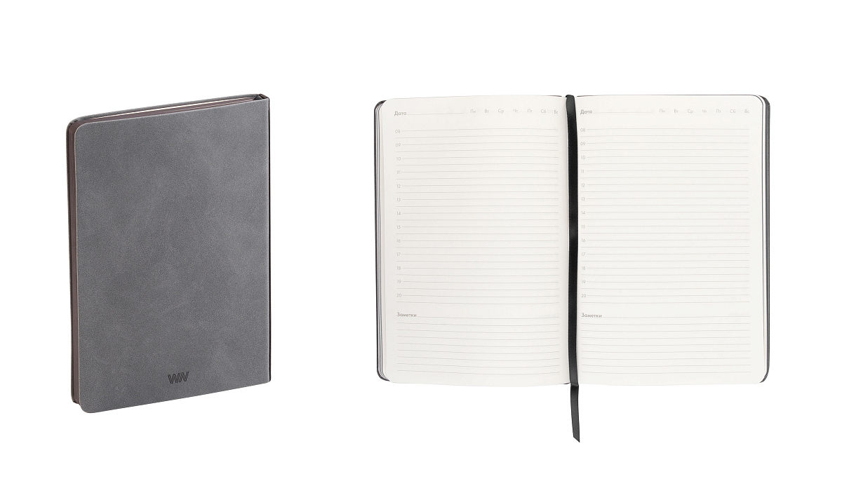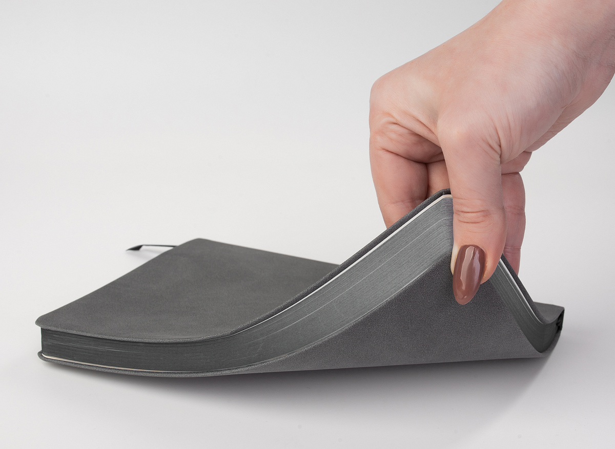 Основной материал напоминает велюр, с характерной тактильностью и гибкостью, такой ежедневник не хочется выпускать из рук.