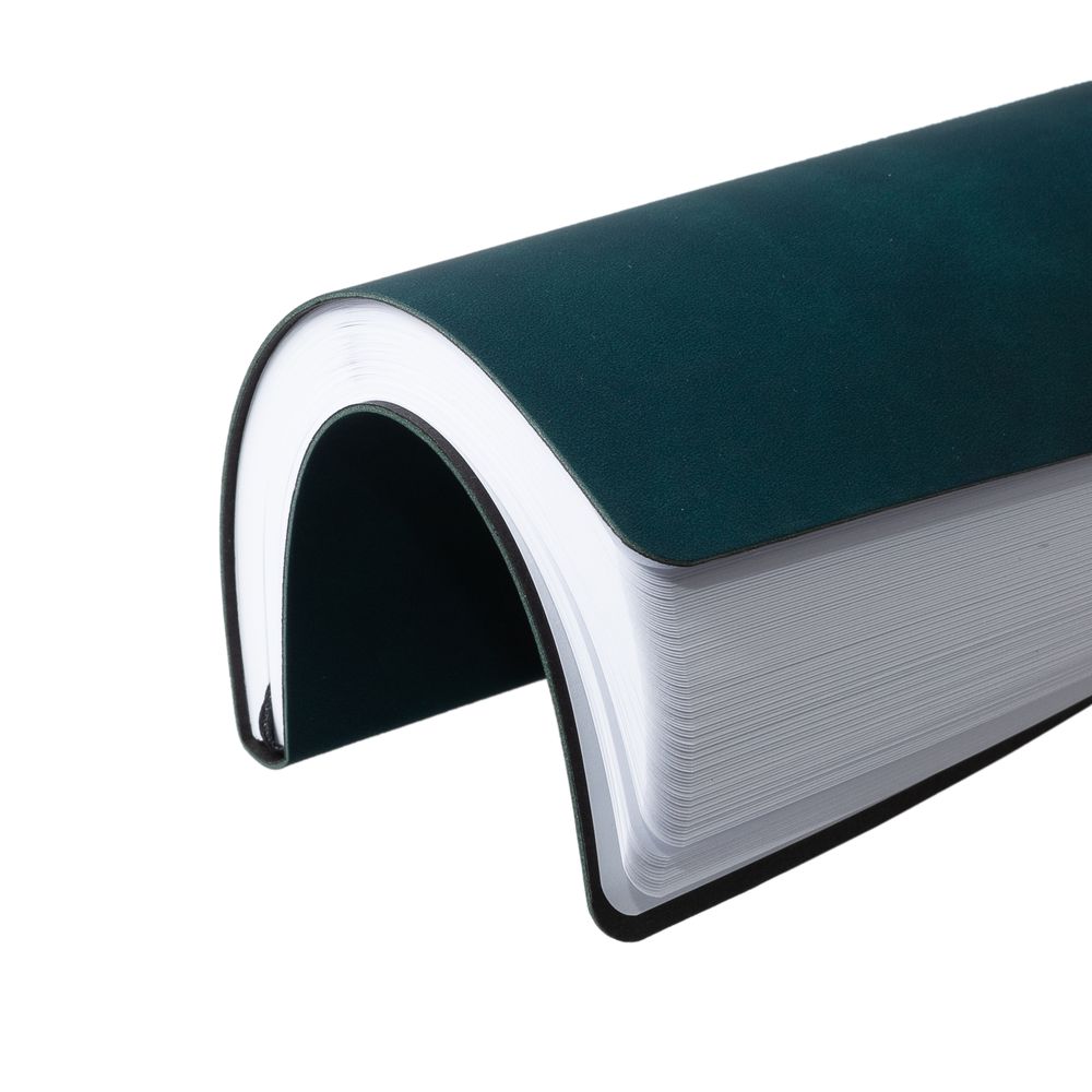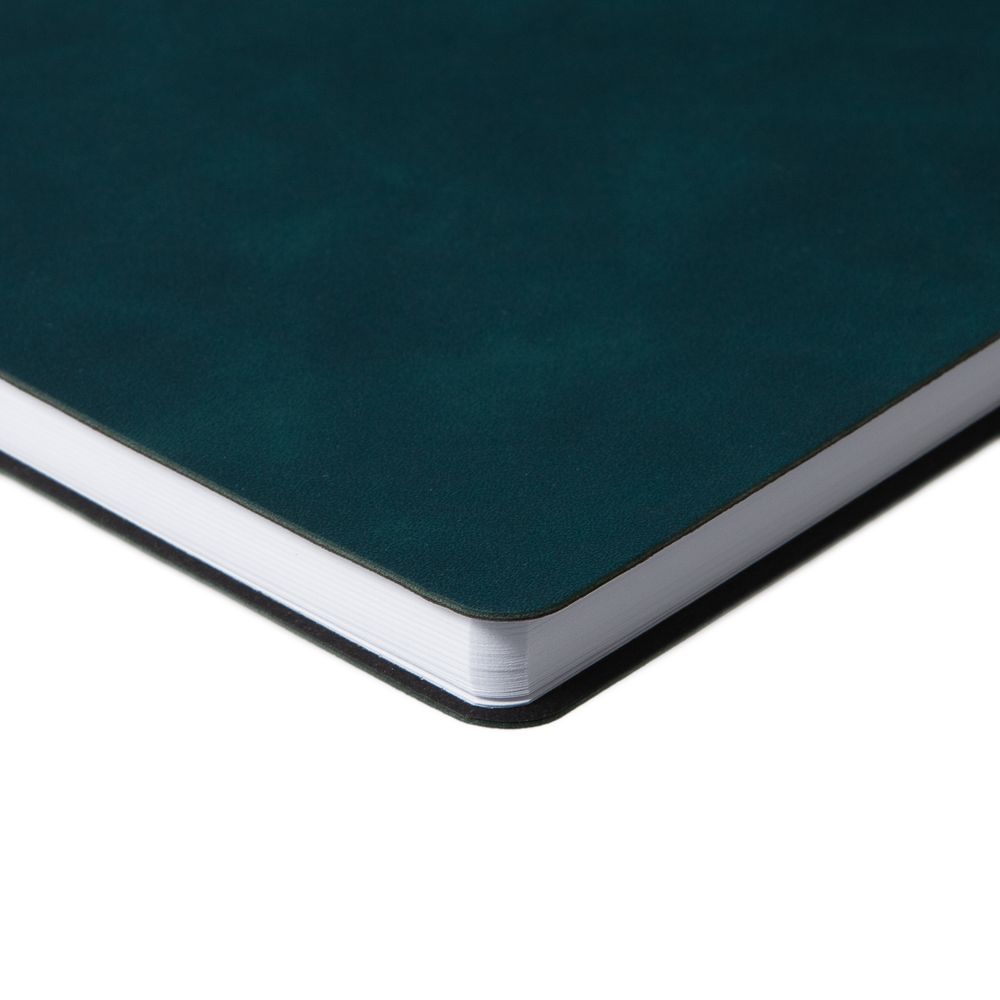 Ежедневник с гибкой обложкой, выполнен из материала Nubuck Touch, зеленый VV, дополнен ляссе и петлей-резинкой для ручки черного цвета.